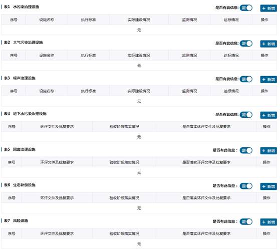进入项目后,小编看到了如下的类别,覆盖了“建设项目基本信息”、“工程变化情况”、“污染物排放量”、“环境保护设施落实情况”、“环境保护对策措施落实情况”、“工程建设对项目周边环境的影响”、“验收结论”几个方面。