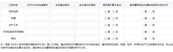 再让我们看一下工程变化情况相关内容,主要是填写项目性质、规模、生产工艺,环保设施或环保设备等的变化情况,当然没有变化就选否了。