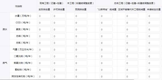 污染物排放选项中填写的内容也比较轻松,是各类污染物的排放情况及相关削减情况。这个表让小编想起了《建设项目环评审批基础信息表》。